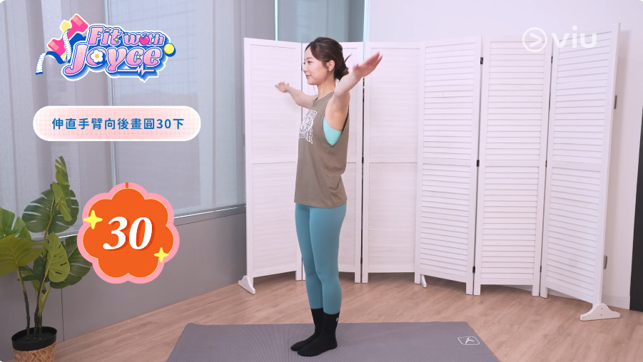 小提醒:全程使用手臂發力帶動動作,不要用到肩膀力量;若想更快速瘦手臂,可以雙手握著一對輕啞鈴 (0.5-1kg) 或水樽進行。